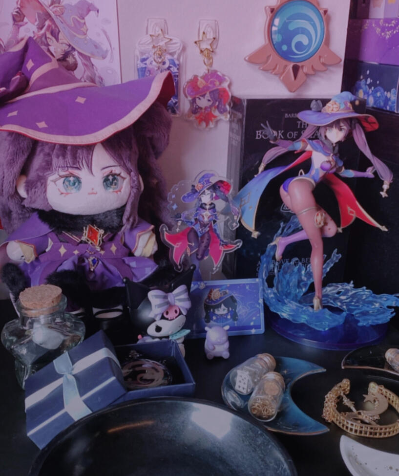 ☆ 2 mona figurines and stand, mona plushie, keychains, poster, banner and others